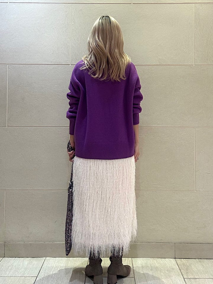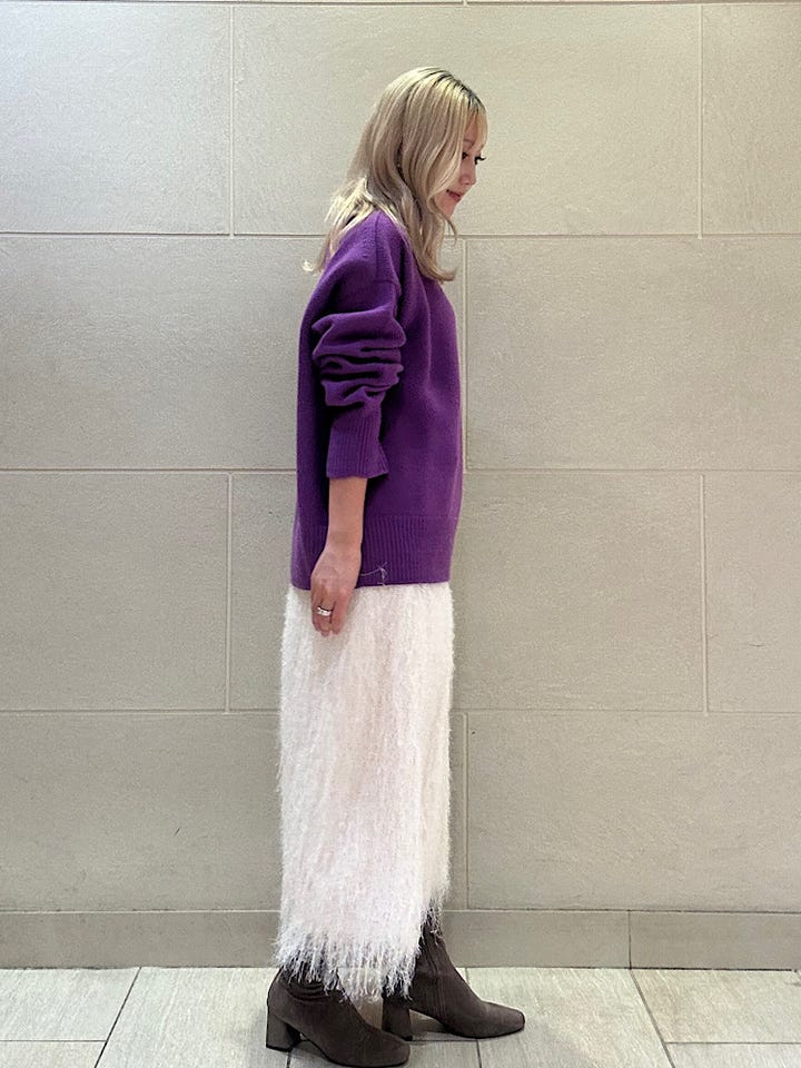 素材感/着心地:毛足の長いフリンジですが、足首が見える丈感なので重く見えないです。