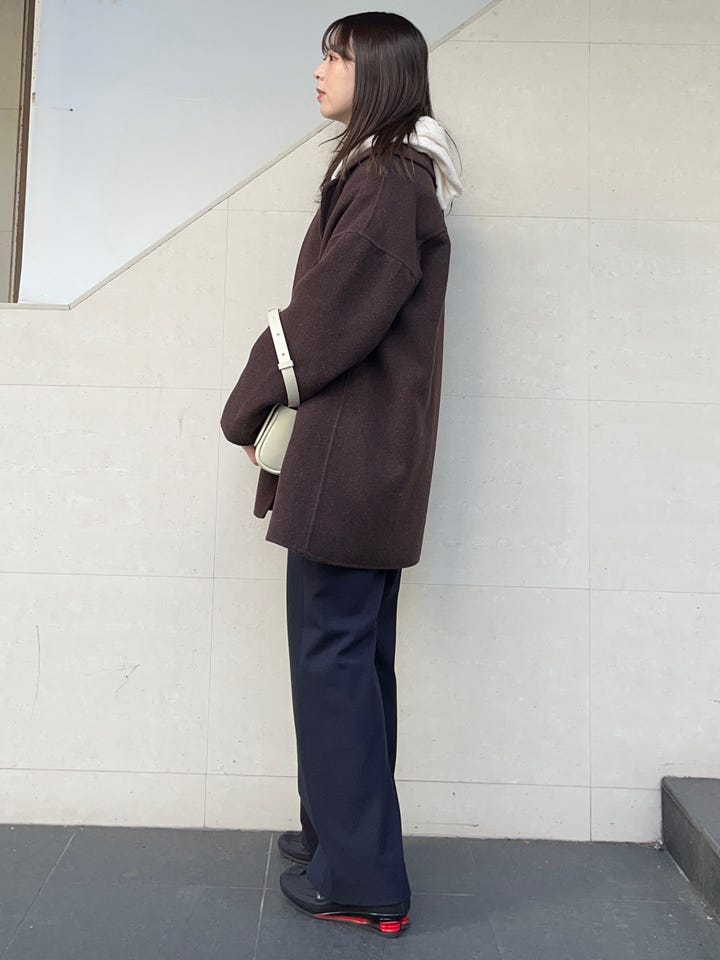 少し大きめのサイズ感で、中に着込むこともできます。広がるデザインではないので着膨れも気にせず着用いただけます!