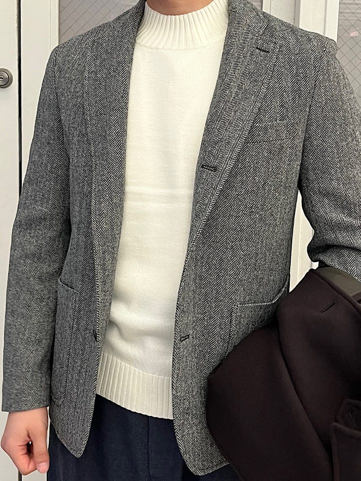 着心地:少し身幅に余裕がありドレスのジャケットよりラフに羽織れます。