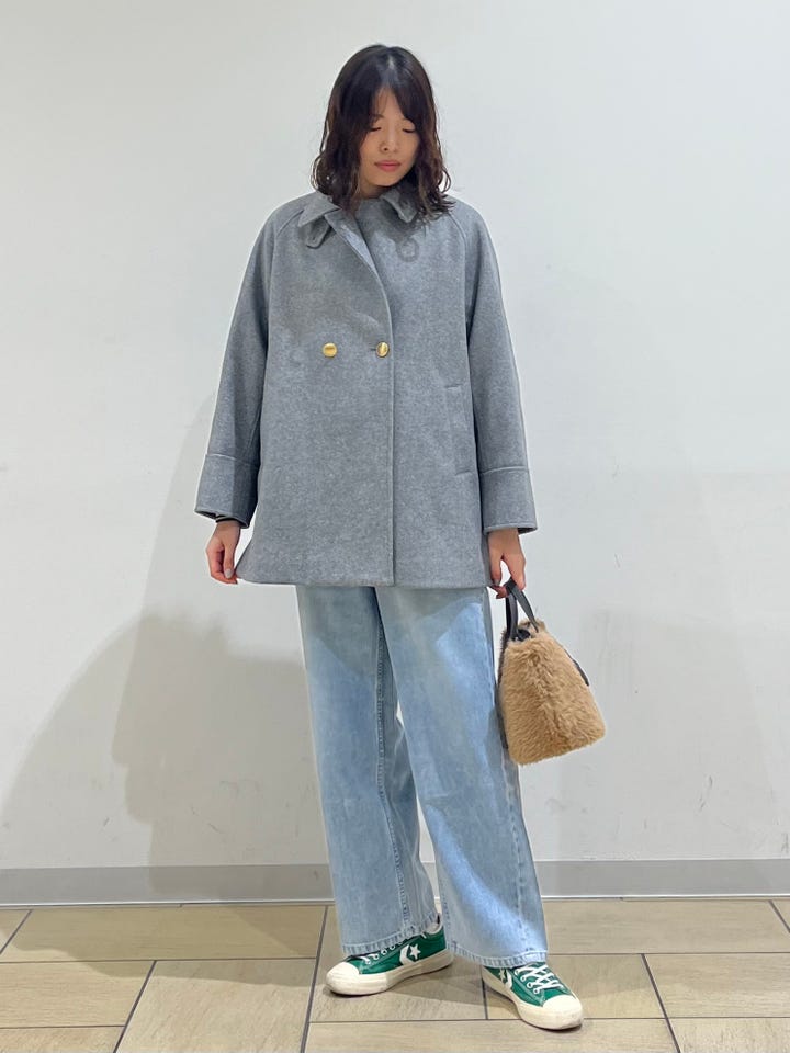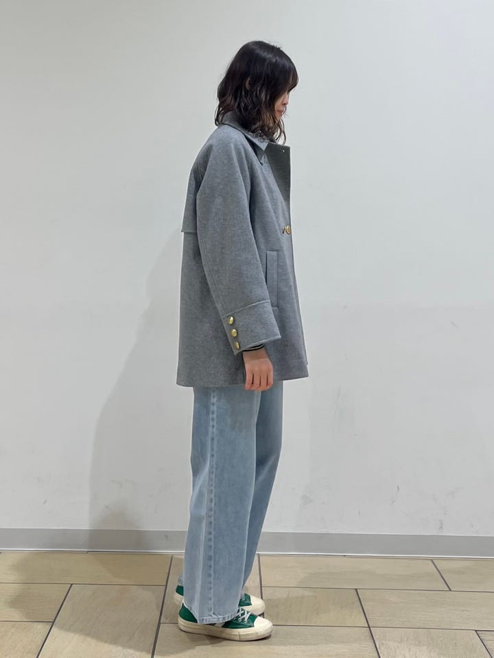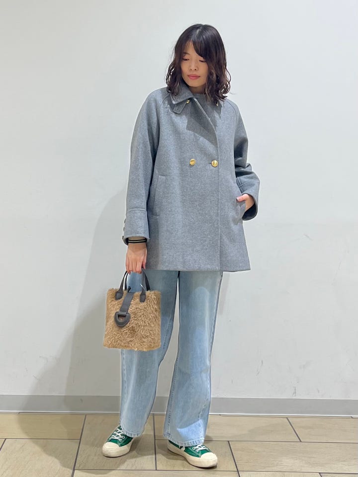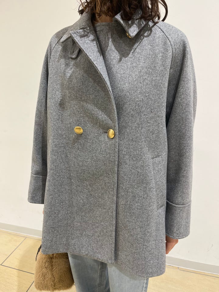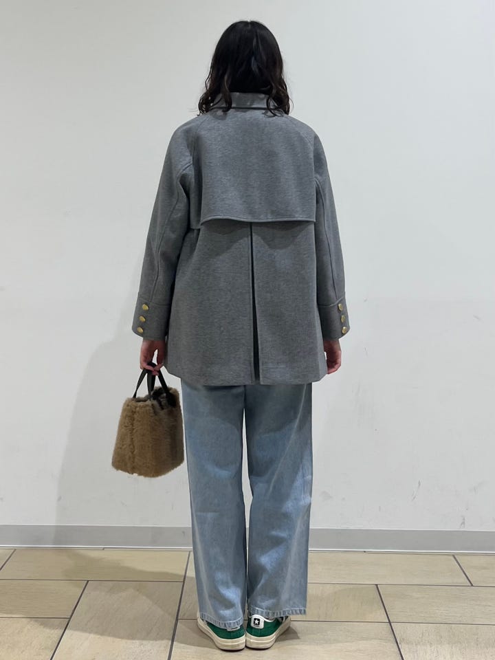 着心地:フロントボタンがアクセントになるPコート。バックスタイルも可愛いです。