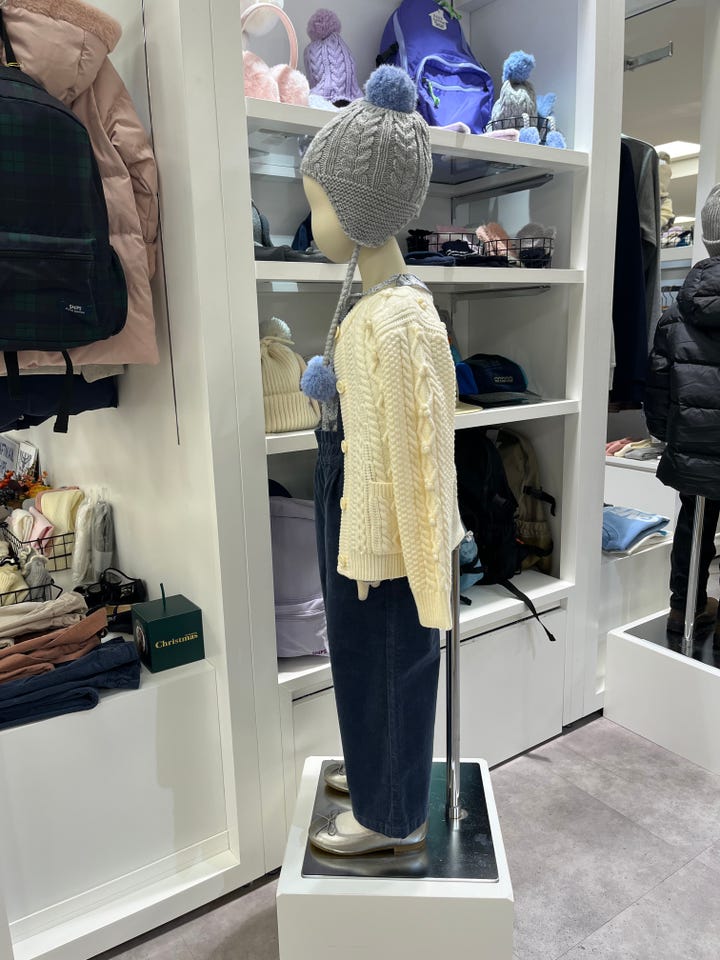 〔140〕SHIPS KIDS:140〜150cm /〈洗濯機可能〉ケーブル ニット ポンポン カーディガン