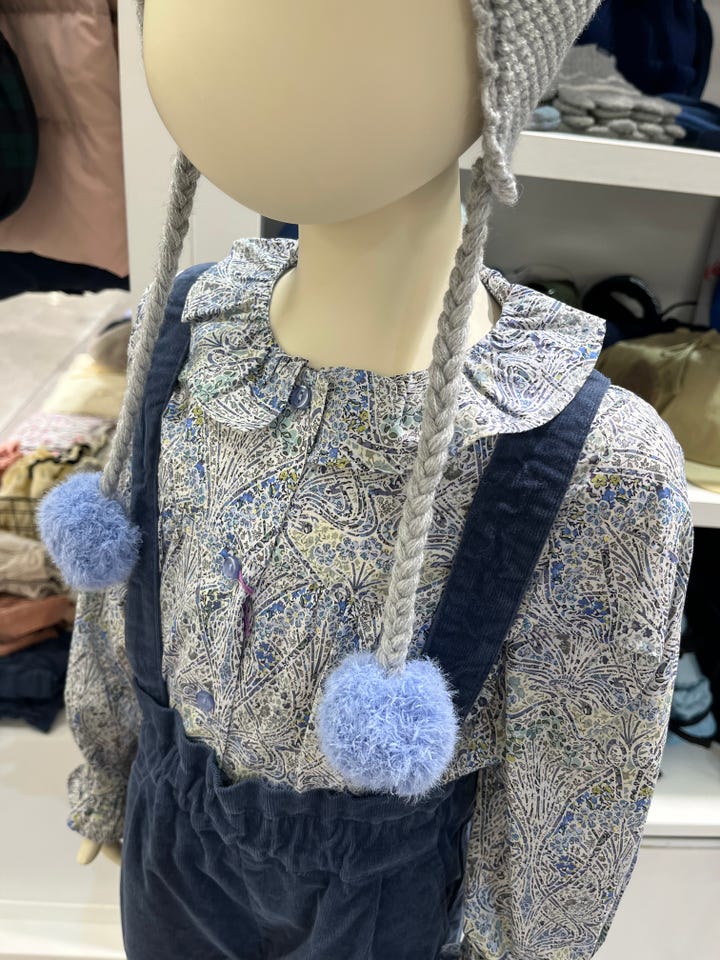 ストラップ付きのワイドパンツは、カジュアルな印象ですがリバティのブラウスとコーディネイトしました。