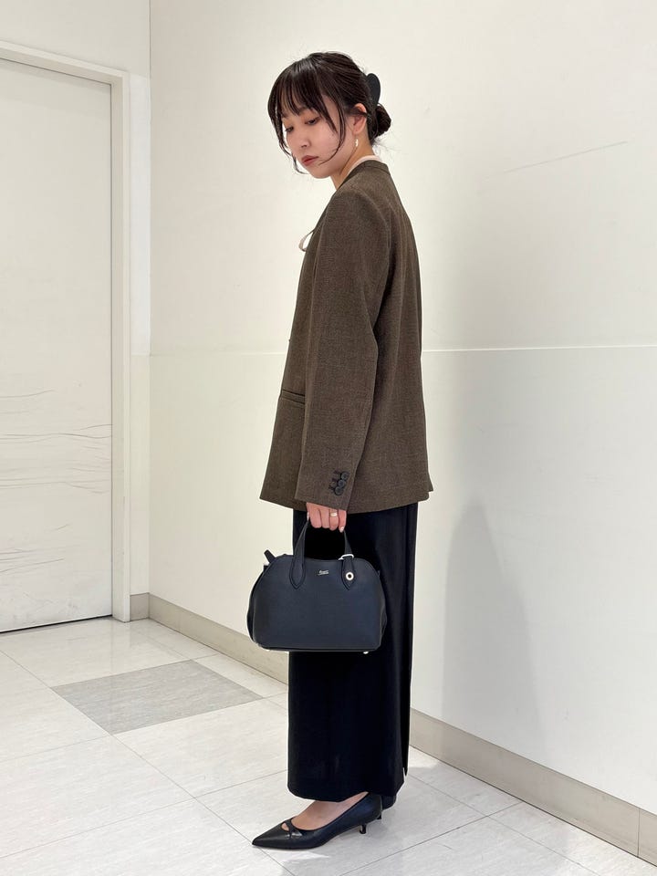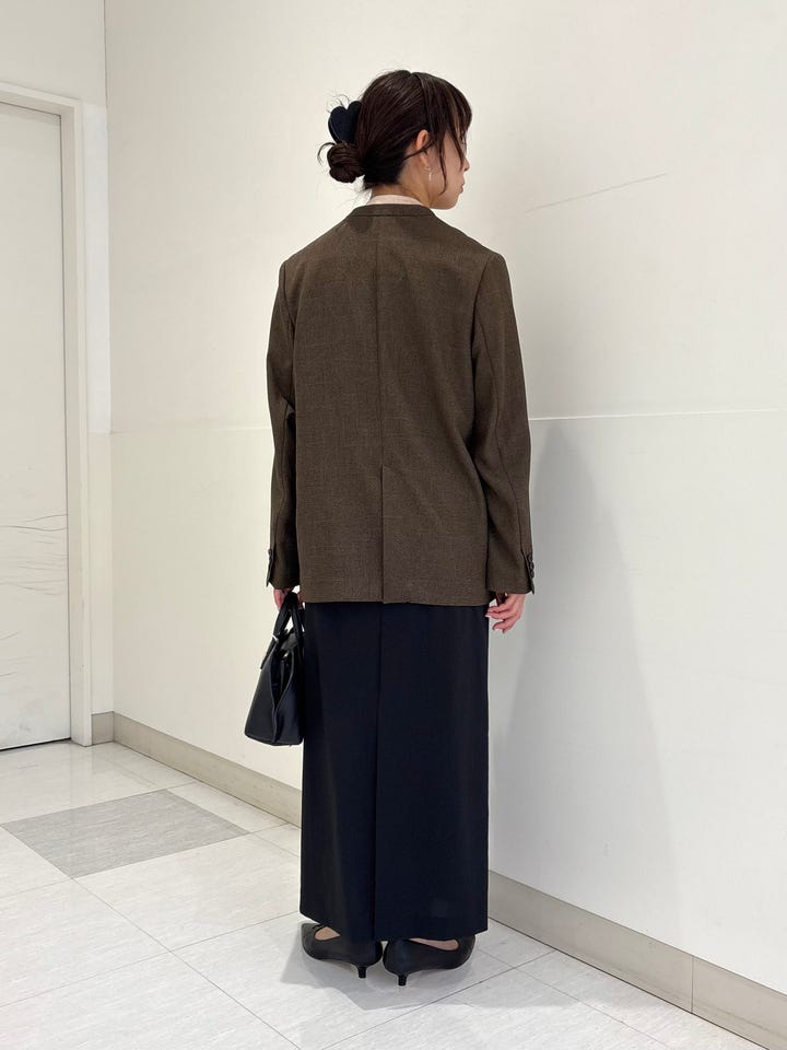 しっかりとした丈感。着心地ややゆとりのあるサイズ感です。お家で手洗いもでき、シワになりにくいため、デスクワークにもおすすめです。セットアップのパンツを合わせてビジネスニーズはもちろん、普段使いにも可愛いアイテムです!