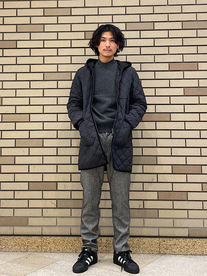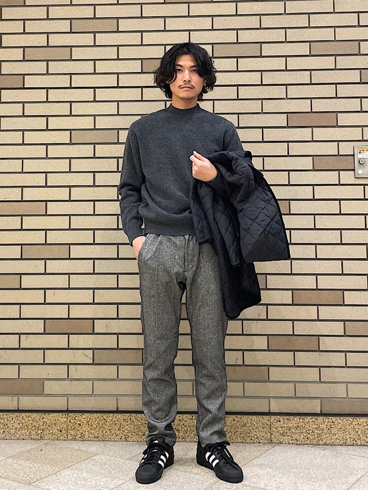 サイズ感:ジャストサイズ、中に厚手のニット着用できるサイズ感です