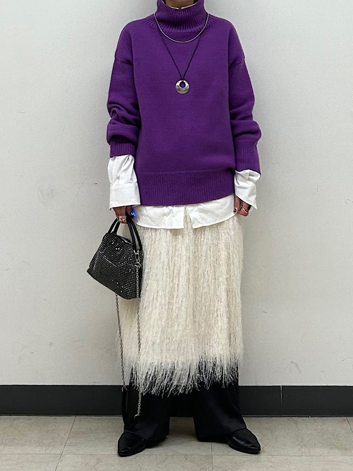 着心地:伸縮性抜群で、タイトスカートとは思えない動きやすさ。裏地付きで滑りもよく、パンツとのレイヤードもストレスなくできました。