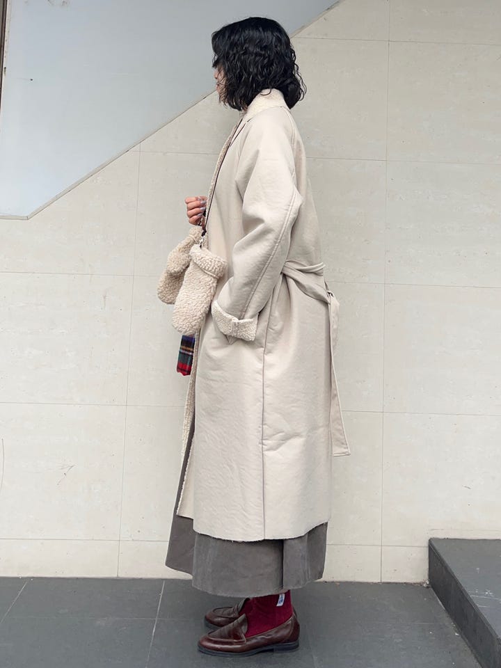〔ONE SIZE〕FLAT YOU: ポリエステル ムートン ボア ロング コート