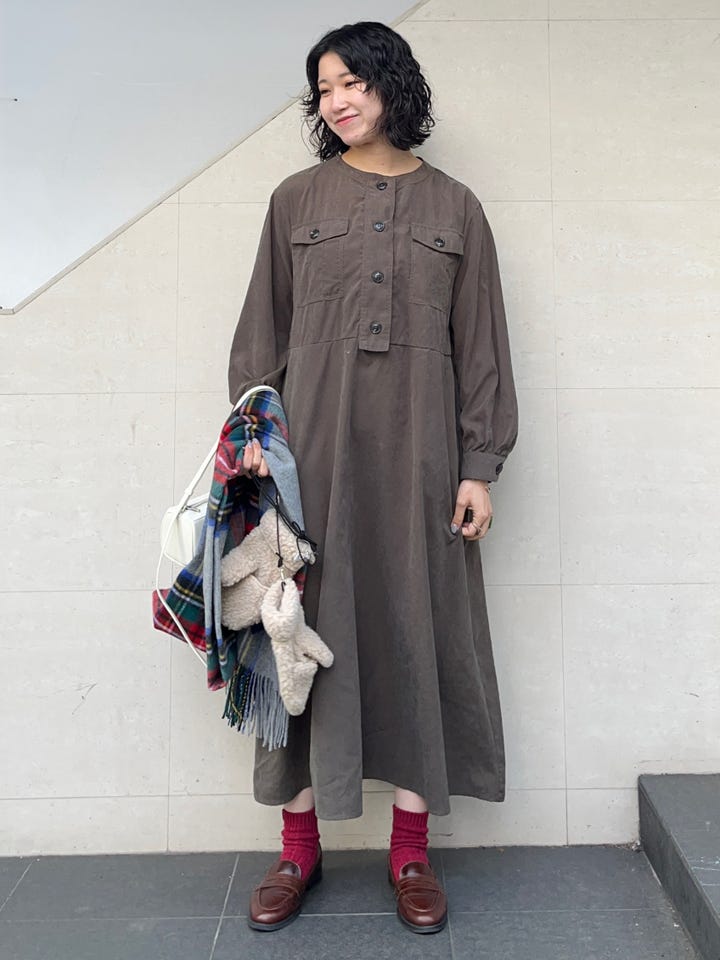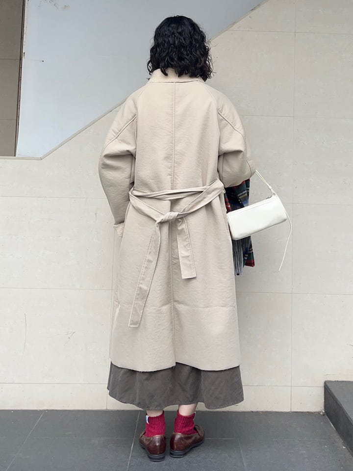 薄手なので、シーズンは長く着ていただけます。ポケットやボタンのデザインで、一枚でも着れますが、冬は中にタートルネックや下はタイツを履くのも◎