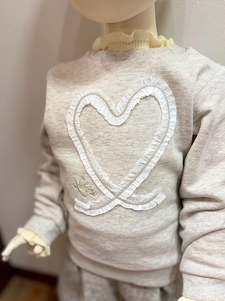 ギャザーとスパンコールで作られた、大きなハートが可愛い一枚♪
