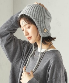 〔ONE SIZE〕perah: ブローチ 付 イヤー フラップ ラメ ニット キャップ