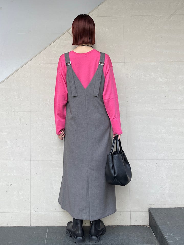 着心地:ツルっとした質感、スッキリとしたAラインシルエットです。肩紐のデザインも華やかで後ろから見ても可愛いアイテム。