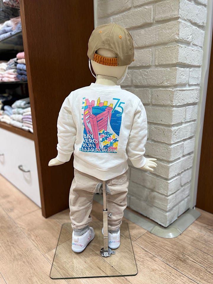 シップス創業の1975年をデザインに取り入れたヴィンテージ風スウェットは、とくにアウターを脱いだ時のバックプリントが可愛いです。