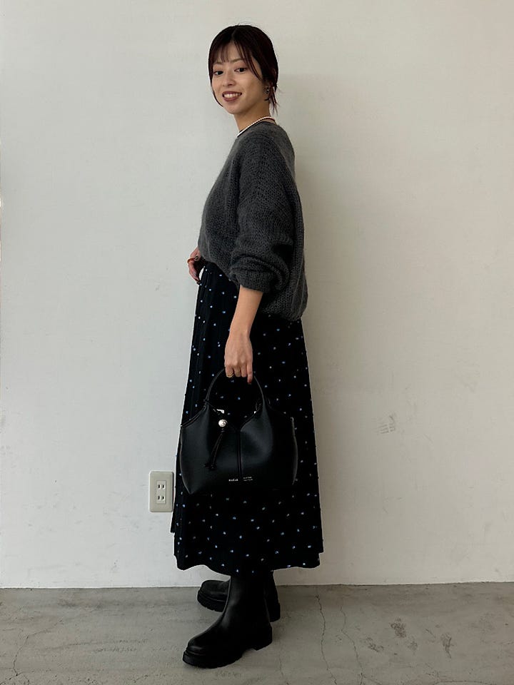 広がりすぎないフレアの形がフェミニンにもカジュアルにも使っていただけます。
