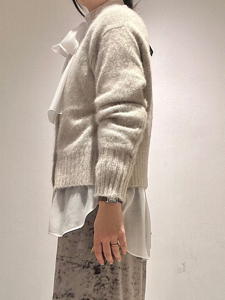 着心地:非常に軽くてびっくりしました!柔らかく暖かさも◎アウターがいらない時期には羽織としても重宝します。