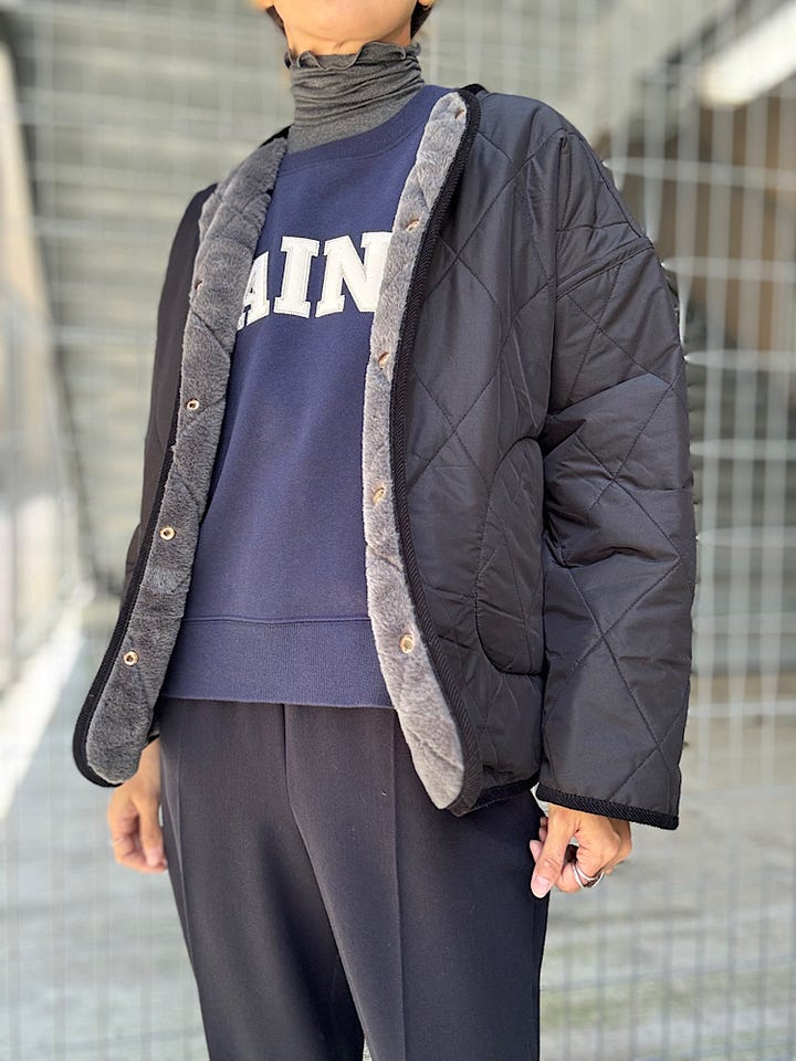 【素材感・着心地】 リバーシブルのキルティングジャケット。コーディネートしやすいブラック×グレー。