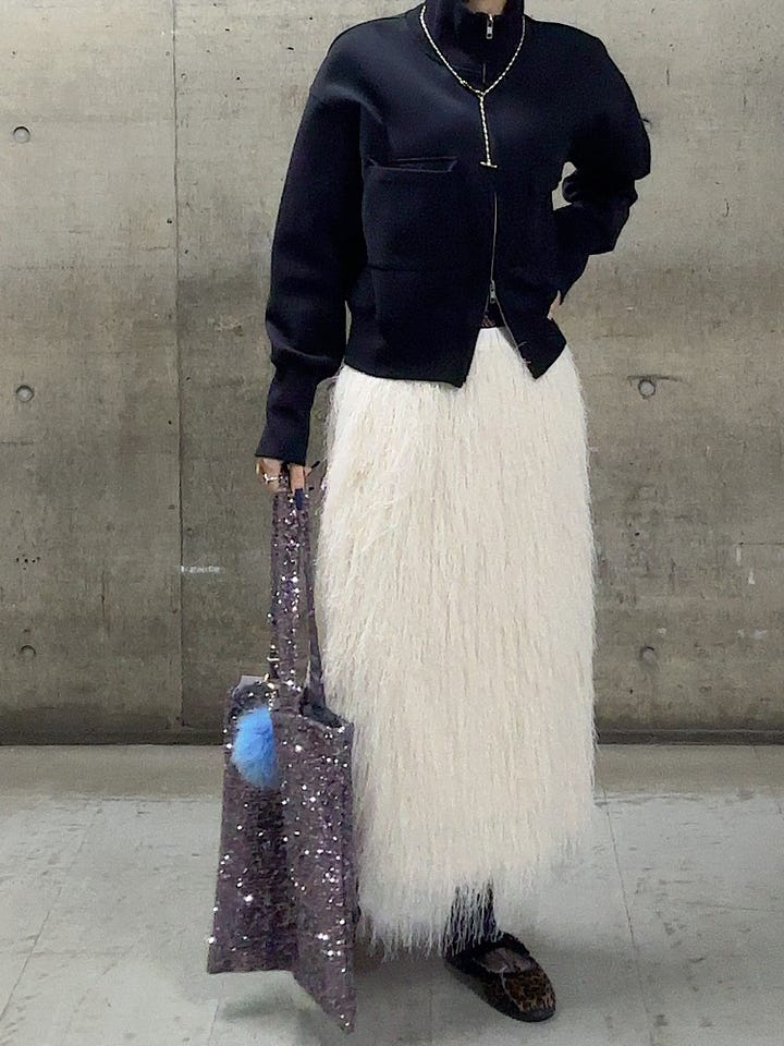 少しミディ丈なので、ブーツがチラ見えする長さが可愛いです。