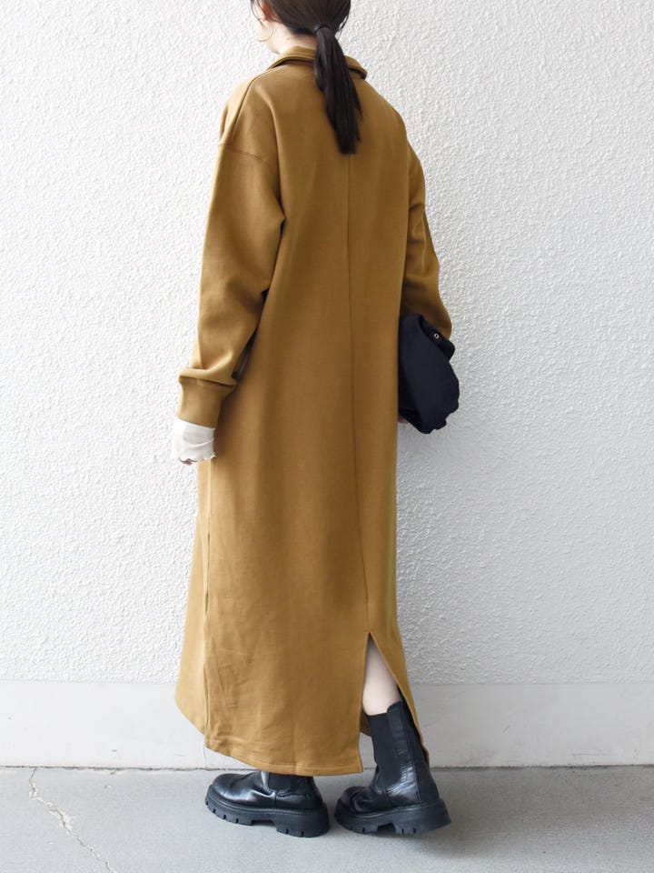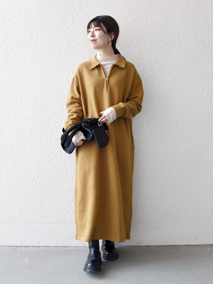 着用アイテム:SHIPS any:〈洗濯機可能〉USA コットン 裏起毛 ハーフジップ ワンピース
