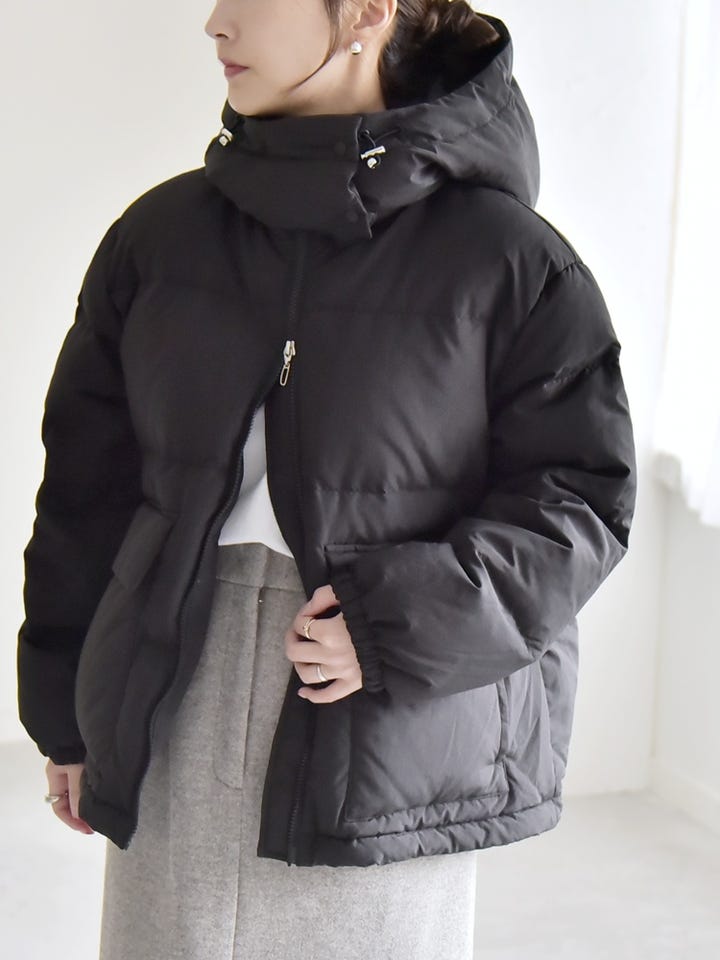 〔ONE SIZE〕quaranciel: フーディー & ハイネック 2way ショート ダウン ジャケット