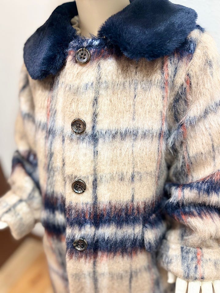 〔100〕SHIPS KIDS:100〜130cm/シャギー チェック コート