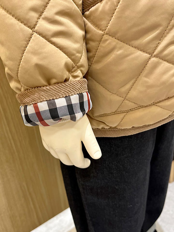 袖口を折り返した裏地には、チェック柄をあしらい、秋冬らしいアクセントをプラス♪