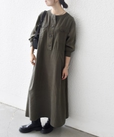 ゆったりとしすぎず、ストンと落ちるストレートシルエットです。襟のアレンジで違う雰囲気が楽しめます。