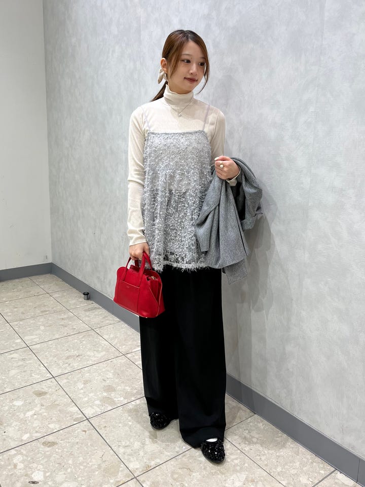 着心地:軽い生地と、さりげないスパンコールがフェミニンで大人かわいいコーディネートに仕上がります!