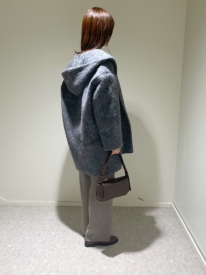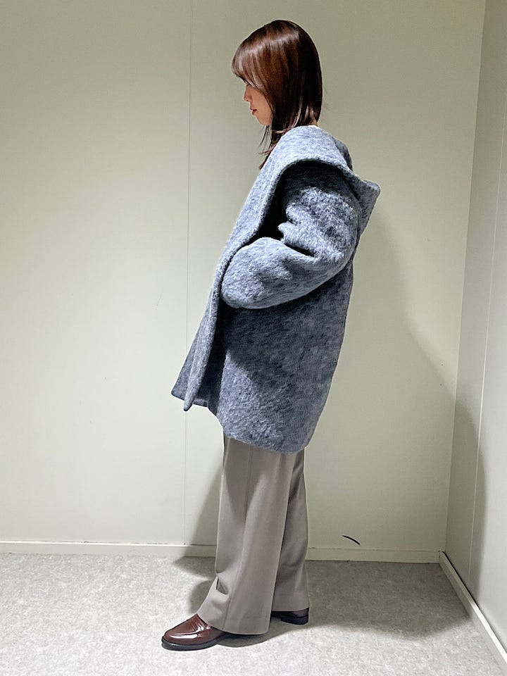 全体的にややゆったりしたサイズ感で着丈も膝上ほどで長めな作りになっています。スウェットを着ても余裕がある作りなのでニットなどインナー選ばす着用して頂けます。スカートにはミドル丈のものが相性良いです!