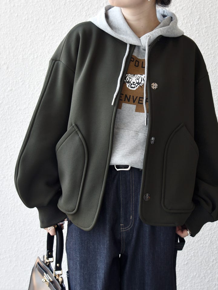 〔ONE SIZE〕SHIPS any:〈洗濯機可能〉ダンボール ノーカラー コンパクト ブルゾン
