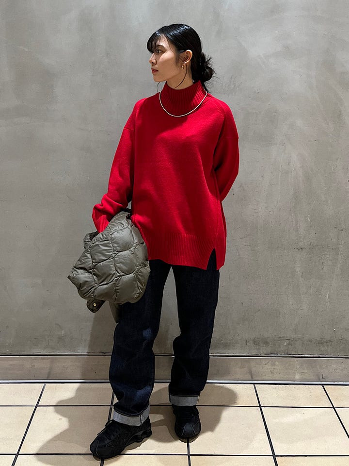 首の後ろに小さなスリットがあり、タートルネック特有の締め付け感がなくストレスフリーな着心地です!