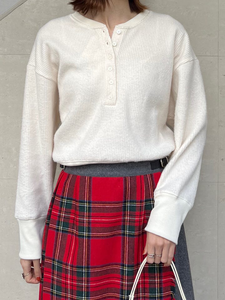 〔ONE SIZE〕SHIPS any:〈手洗い可能〉起毛 ワッフル ヘンリーネック コンパクト プルオーバー