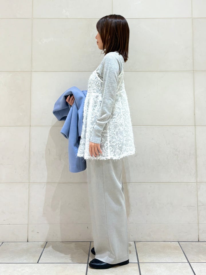 薄手の生地でレイヤードしやすいアイテムです。前後2WAYのデザインで、様々なスタイルに合わせていただけます。