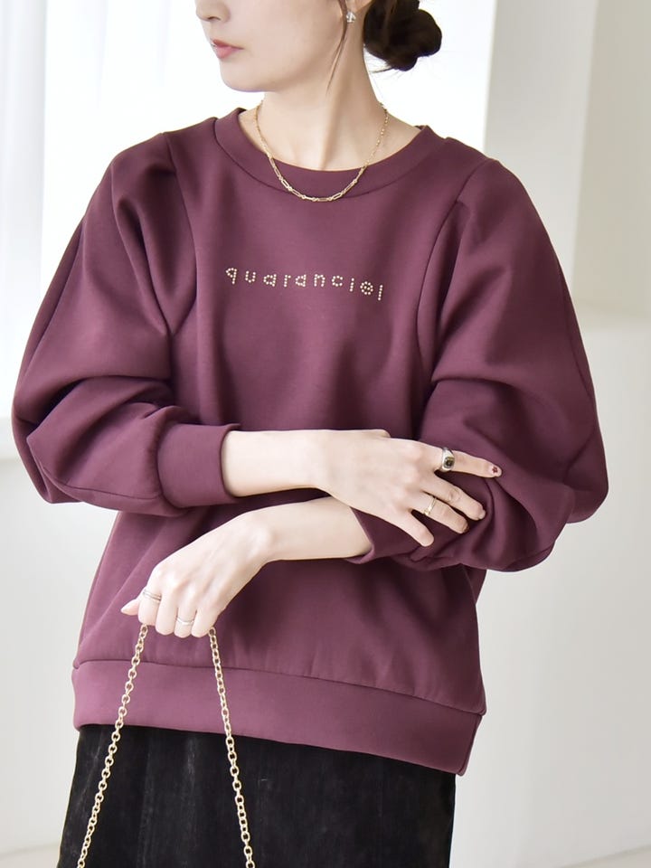 〔ONE SIZE〕quaranciel:〈洗濯機可能〉スタッズ ロゴ ダンボール スウェット プルオーバー