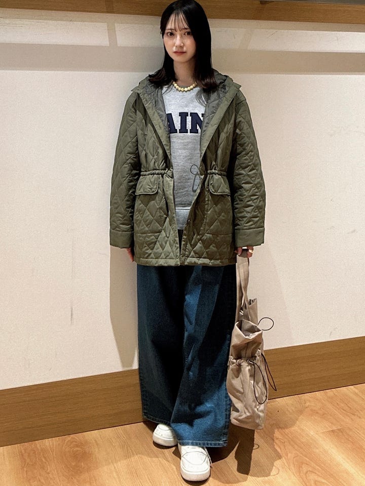 上品に着ていただける中綿のコートです。ウエストのドローコードでシルエットがアレンジしていただけます。着ぶくれもしにくいので、着回しができます。