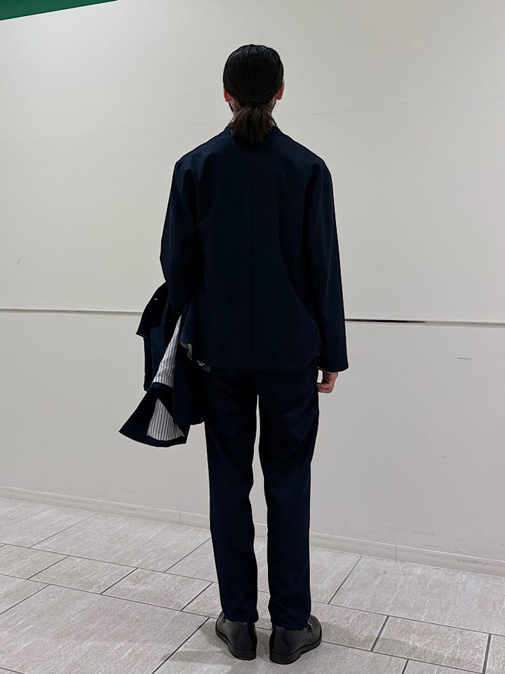 ジャケットはゆったりめなのでワンサイズダウンもおすすめです。