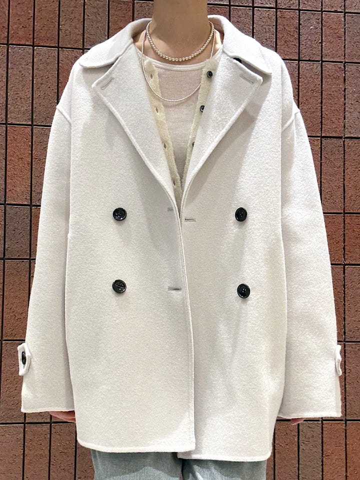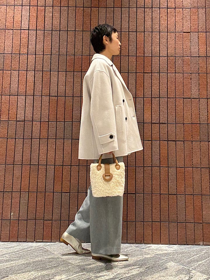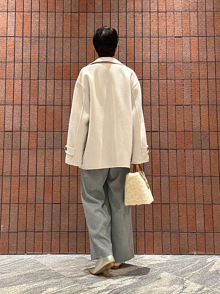 着心地:軽く全体的にゆったりするので、袖通しもスムーズに着用できます。柔らかいウール生地なので、衿元も思っているよりもボリュームが出過ぎずスッキリします。裏地が袖部分のみなので、車移動がメインの方や軽めの防寒着でお探しの方には丁度良い羽織りになると思います!