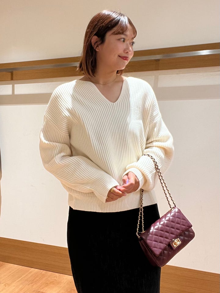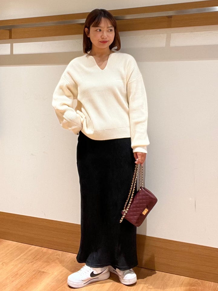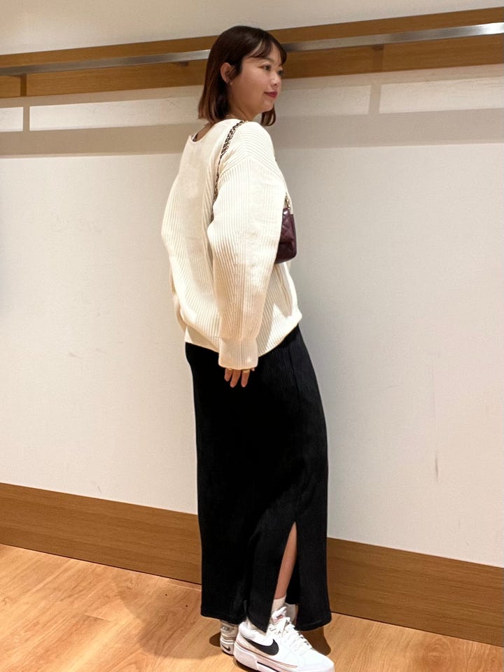 タイトスカートなのでオーバーサイズのものと合わせるとバランスが良くなります♪