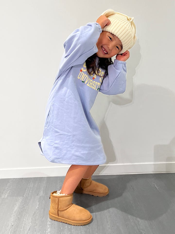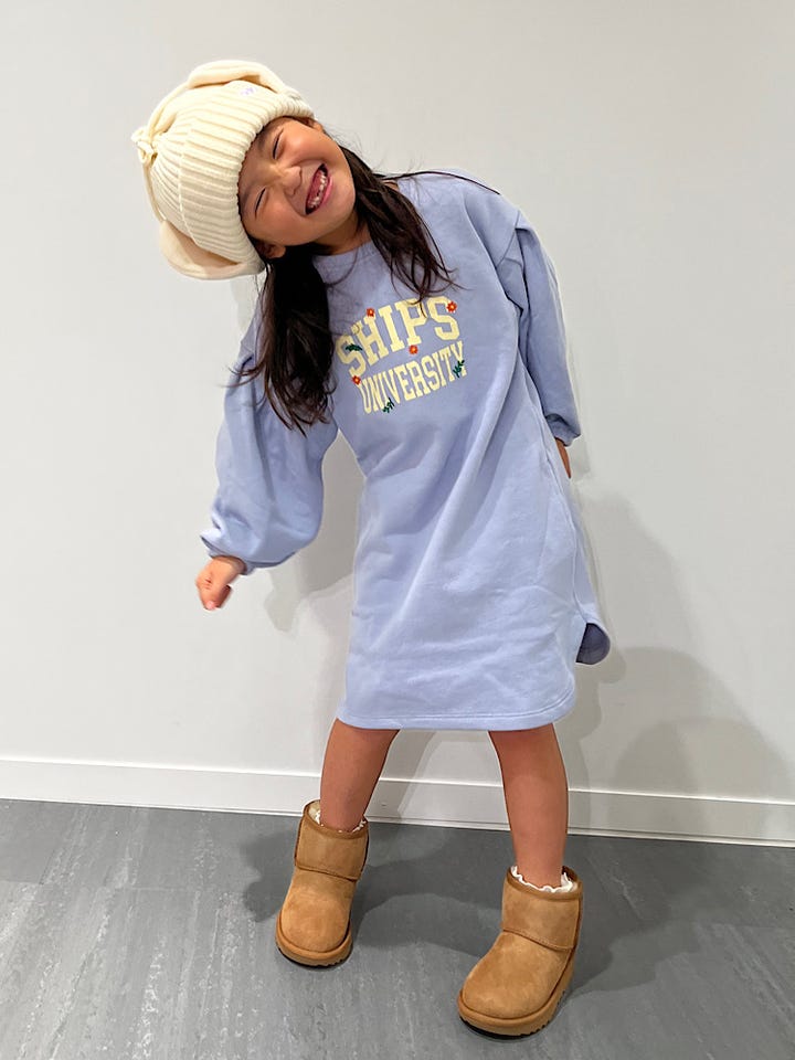 〔120〕SHIPS KIDS:100〜130cm / カレッジロゴ フラワー 刺繍 スウェット ワンピース