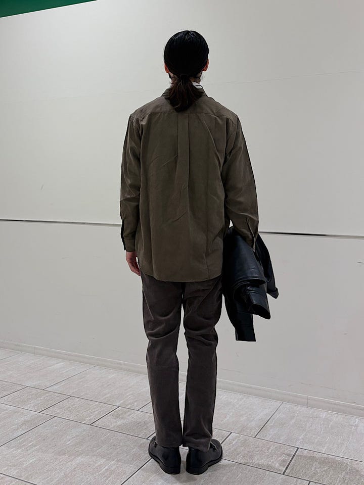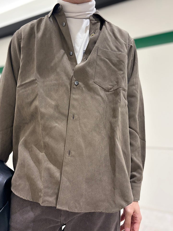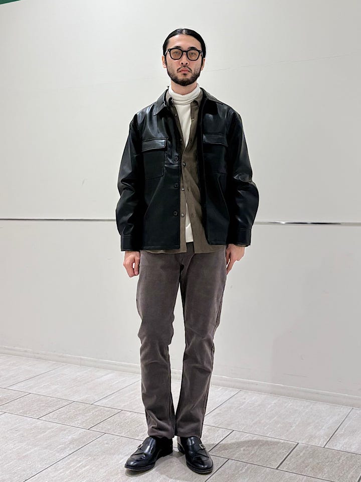 合皮ですがレザー見えするシャツジャケット。総裏地。身幅がややゆとりありのサイズ感。