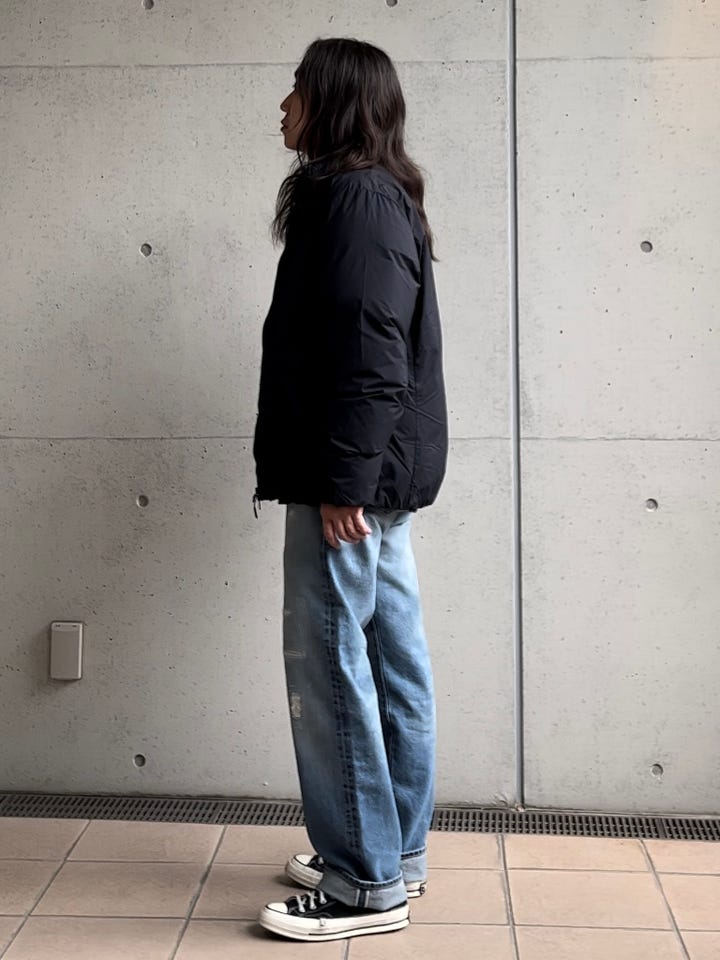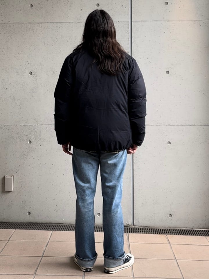 お出掛けやレジャーなど幅広くお使い出来るコーディネート提案です。ジャケットは軽くて着心地も抜群のダウンジャケット。胸元の同色でさりげなくワンポイントもお洒落なポイント。重くなり過ぎないように柄のシャツを差し色に入れてみました。参考にいかがでしょうか。