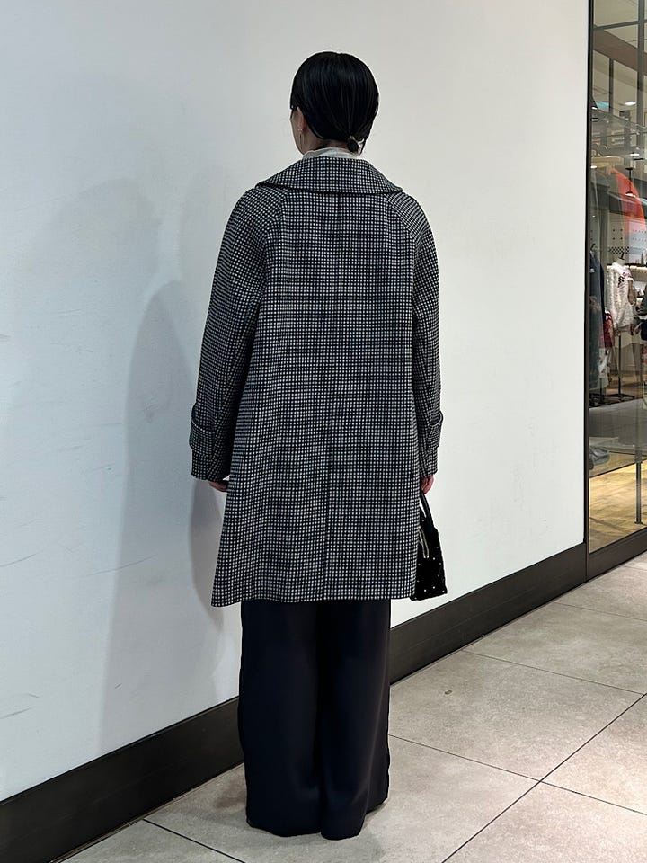 着心地:柔らかい質感のコートです。とても手触りの良いウールです。ラグランスリーブなので肩が動かしやすく楽な着心地です。