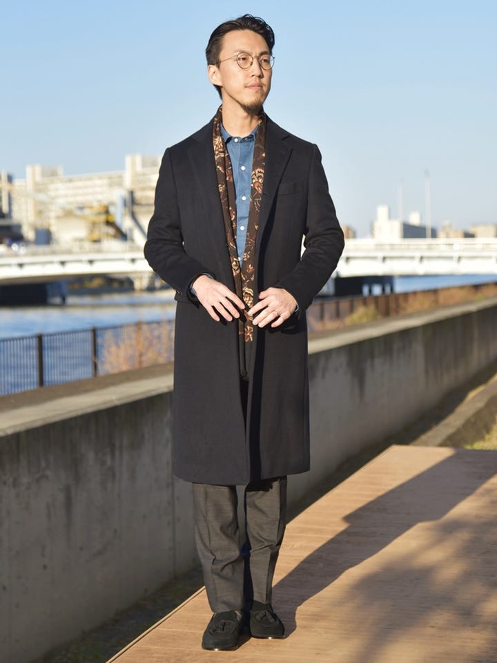 タイドアップでもノーネクタイでもスタイリングを格上げしてくれる確かな存在感があるコートです。