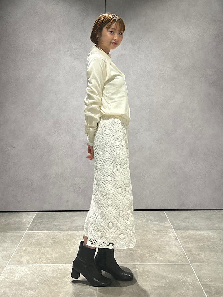 〔ONE SIZE〕〈手洗い可能〉ラッセル レース ウエスト ギャザー タイト スカート