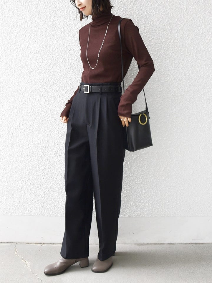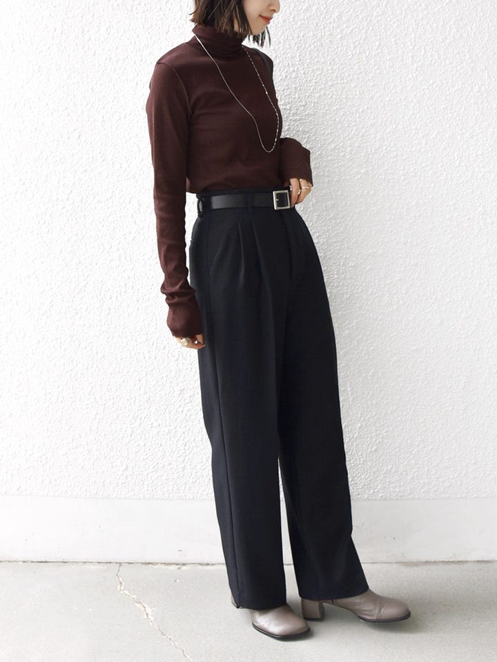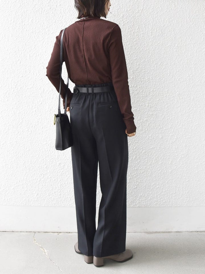 着心地:ウエスト後ろゴムとストレート寄りの細身シルエットで、楽なのにきちんと感もあるのが魅力。トレンド感もありつつベーシックに着回せる一本です。