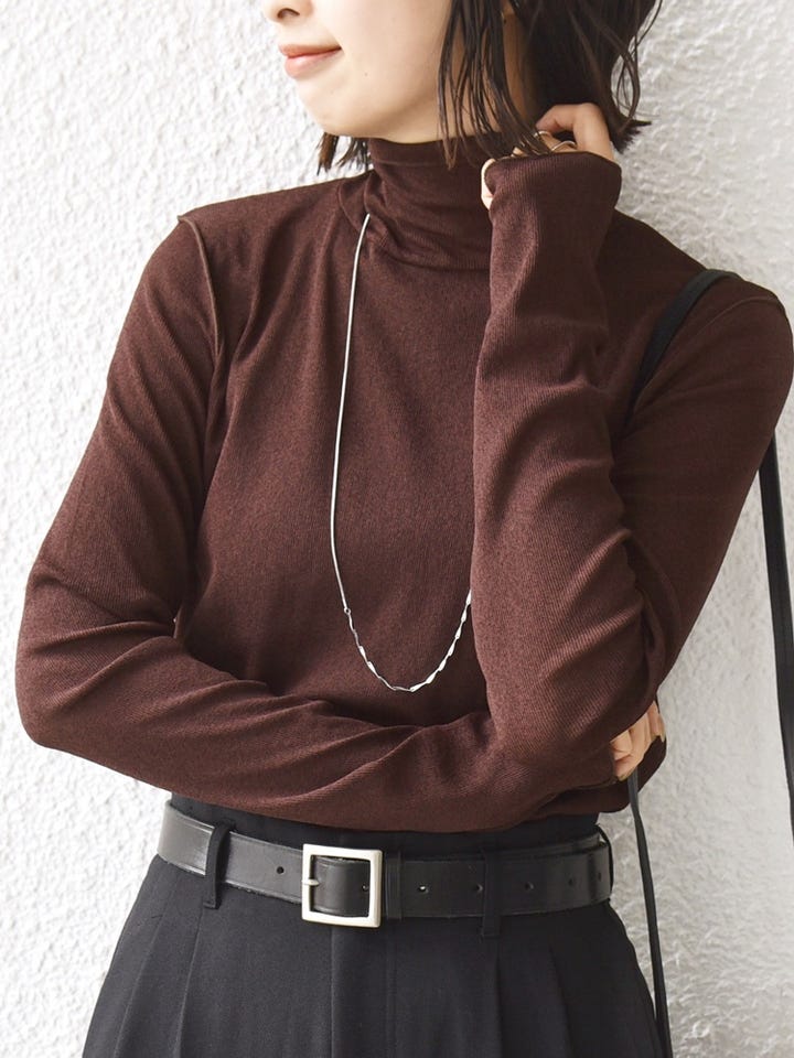 着心地:軽やかな着心地で、一枚でもインナーでも着回せます。透け感があるので同系色のインナー合わせがおすすめ◎