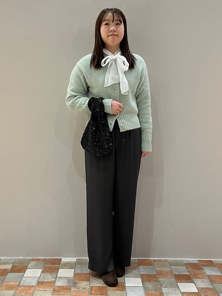 ウエストゴムで、とても楽に履いていただけるパンツです◎サテン素材が、綺麗めな印象にしてくれます。