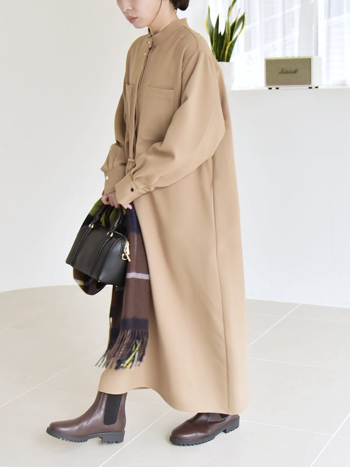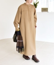 〔ONE SIZE〕《追加予約》quaranciel:〈洗濯機可能〉ダブルクロス スタンドカラー ポケット シャツ ワンピース
