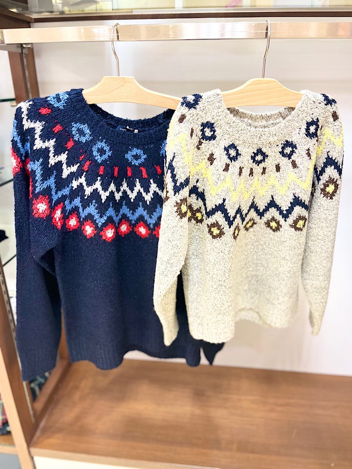 冬らしい柄のニットなので、今の時期のお出かけには気分が上がる一枚になること間違いなしです^ ^
