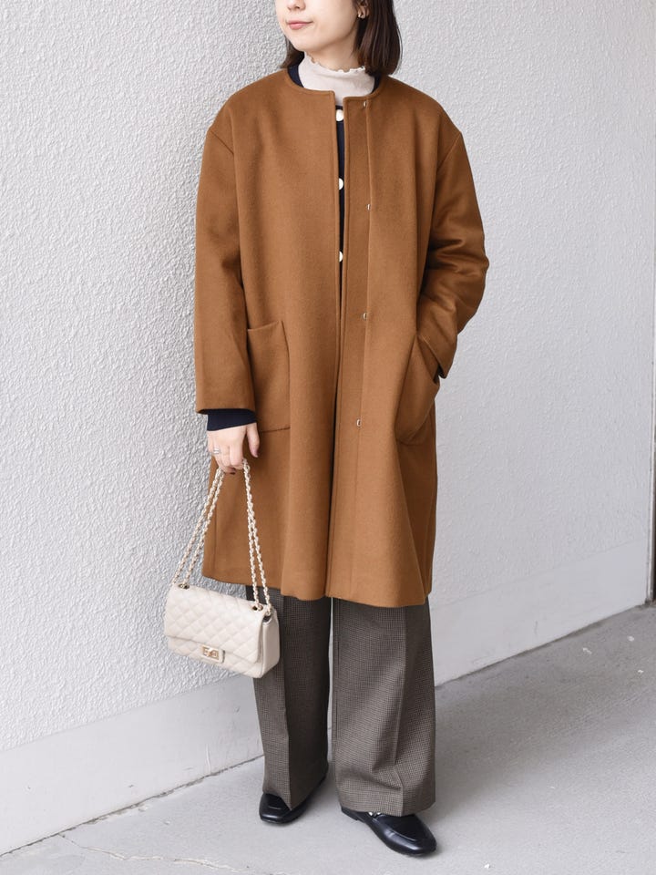 着用アイテム:SUPER100 ウール ノーカラー コート◇