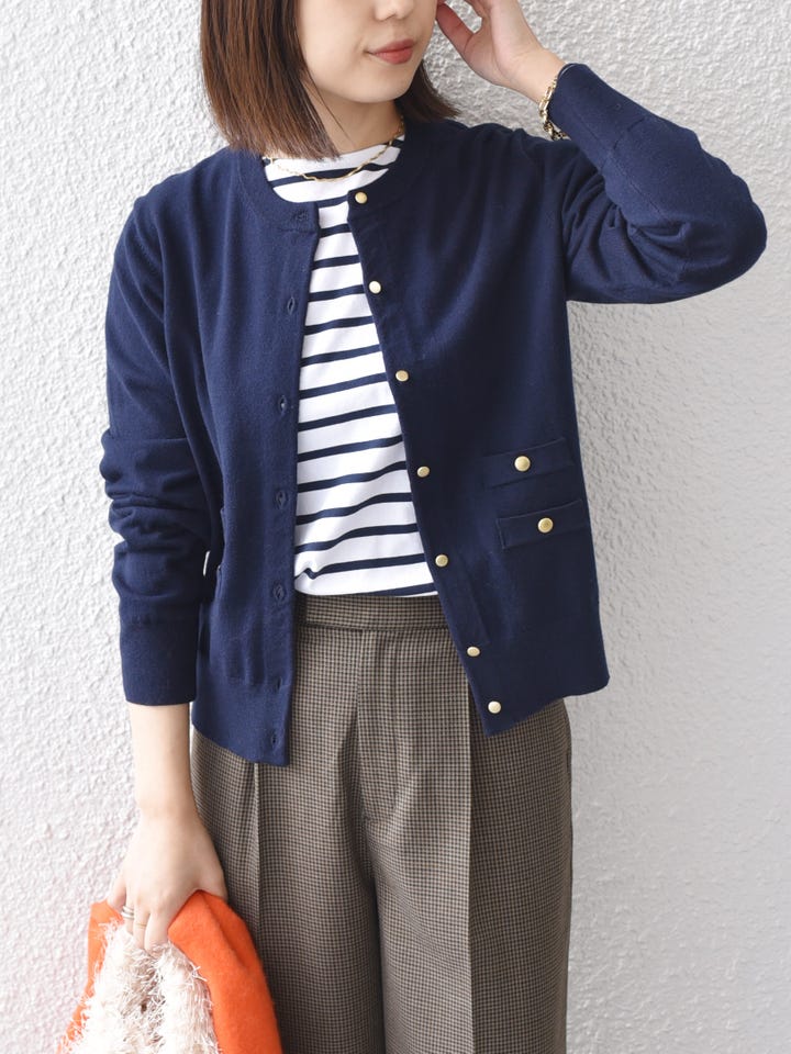 着用アイテム:〈手洗い可能〉14ゲージ クルーネック カーディガン◆