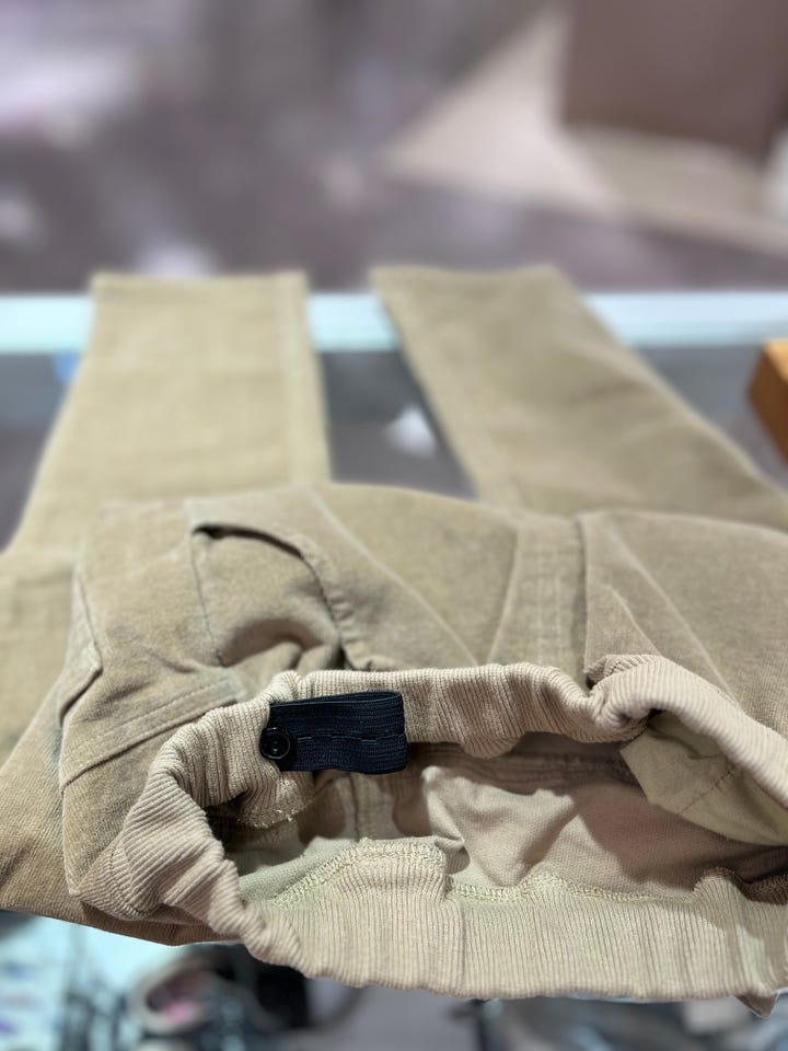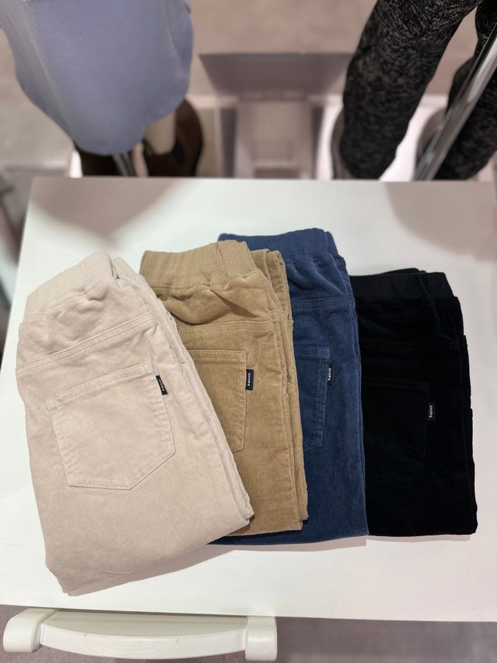 伸縮性の高い素材を使用したストレッチコーデュロイパン。