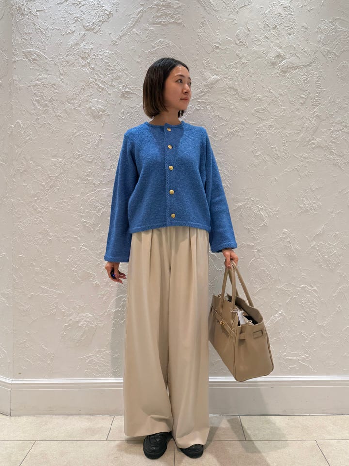 サイズ感・着心地:ゆとりあり。中にTシャツ着ていてももたつきなし。丈感もちょうどいい。前を閉めて1枚で着ても可愛いし、前を開けて羽織りものとして使っても可愛い!